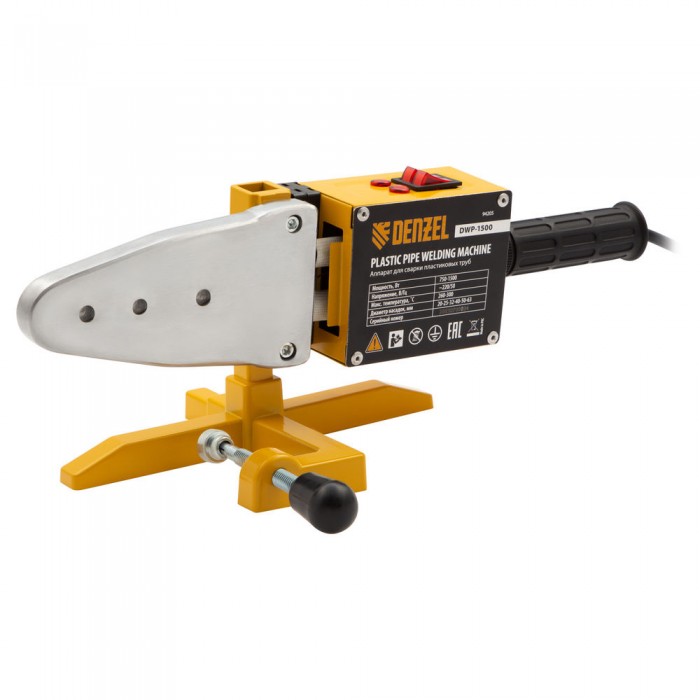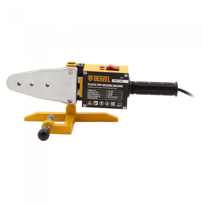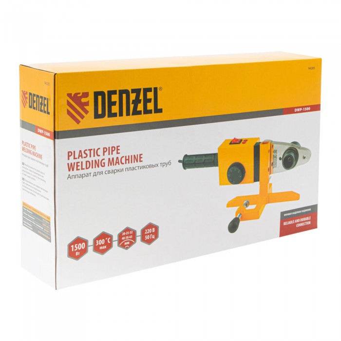 Аппарат для сварки пластиковых труб DWP-1500, 1500 Вт, 260-300 град, комплект насадок, 20-63 мм Denzel (94205)