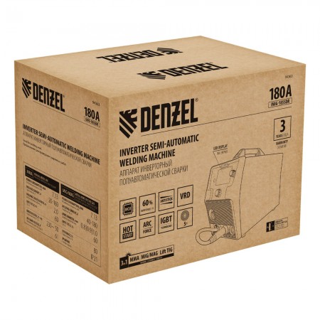 Аппарат инвертор. полуавтомат. cварки IMIG-185SDR, 180 А, ПВ 60%, катушка 5 кг Denzel (94363)