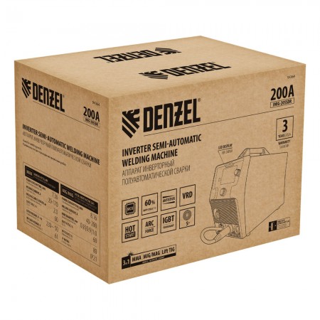 Аппарат инвертор. полуавтомат. cварки IMIG-205SDR, 200 А, ПВ 60%, катушка 5 кг Denzel (94364)