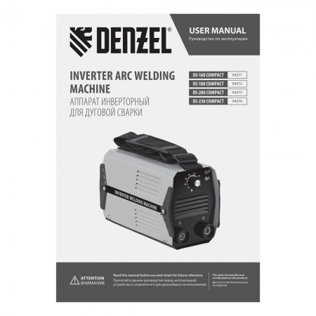 Аппарат инверторный дуговой сварки DS-160 Compact, 160 А, ПВ 70%, диаметр электрода 1.6-3.2 мм Denzel (94371)