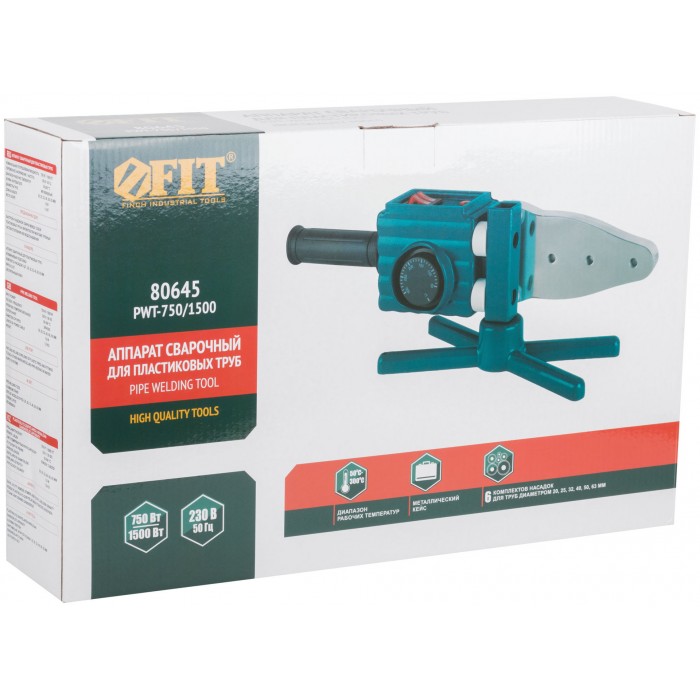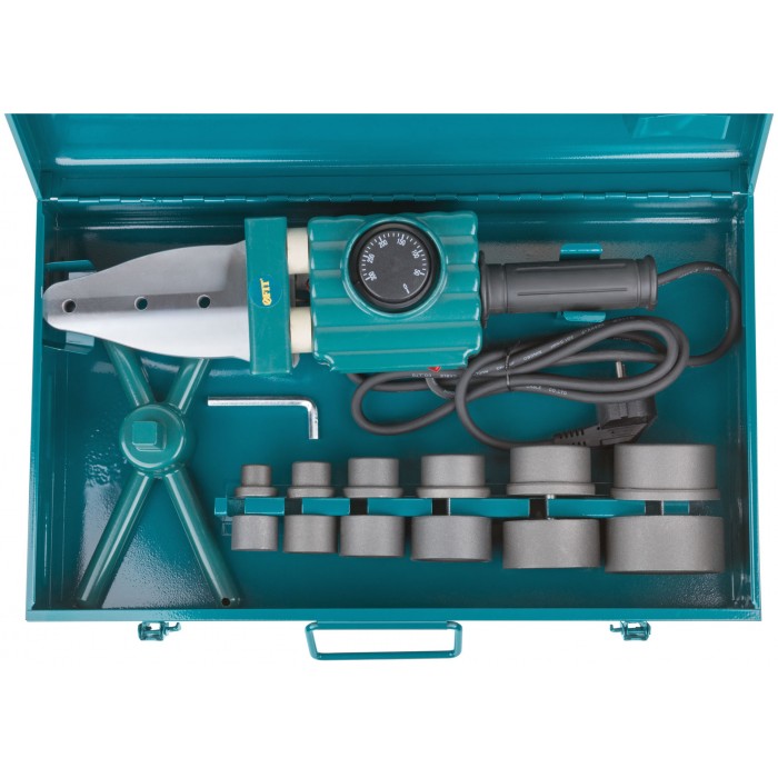 Аппарат сварочный для пластиковых труб 750/1500 Вт; 50-300 °C; диаметры труб 20-63 мм; металл. кейс (80645)