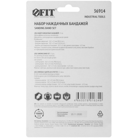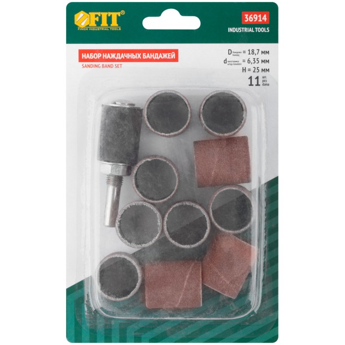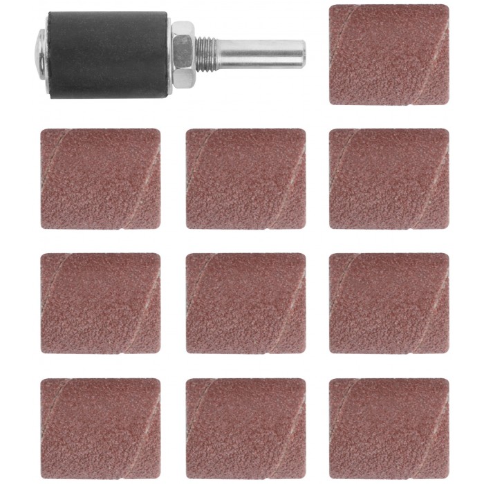Бандаж наждачный и барабан наждачный, набор 10+1 шт. (36914)