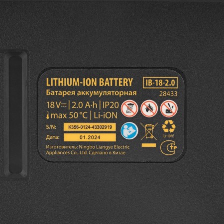 Батарея аккумуляторная IB-18-2.0, Li-Ion, 18 В, 2.0 А/ч Denzel (28433)