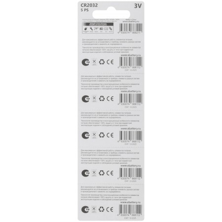 Батарейка литиевая, 3 В, "Таблетка" , 5 шт. (CR2032)