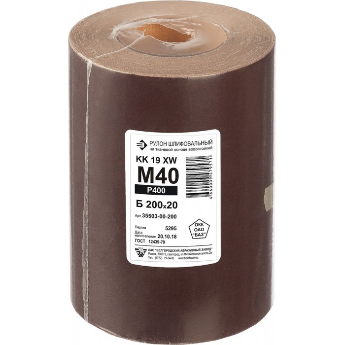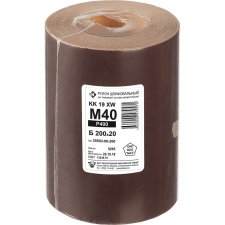 Бобина шлифовальная водостойкая тканевой основе БАЗ KK19FW 0-H (Р400) 200 мм 20 м 35503-00-200