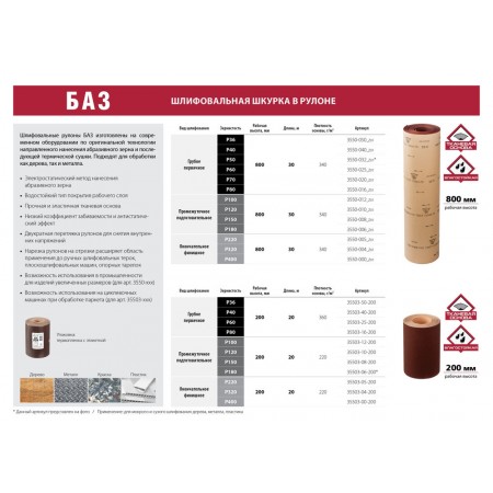 Бобина шлифовальная водостойкая тканевой основе БАЗ KK19FW 5-H (Р220) 200 мм 20 м 35503-05-200