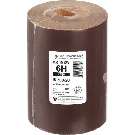 Бобина шлифовальная водостойкая тканевой основе БАЗ KK19FW 6-H (Р180) 200 мм 20 м 35503-06-200