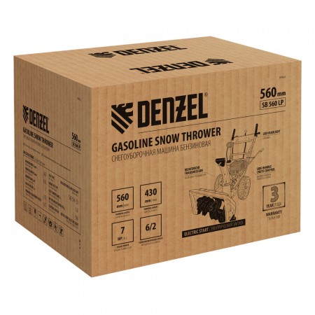 Бензиновая снегоуборочная машина SB 560 LP, 212 cc, электростартер, фара Denzel (97652)
