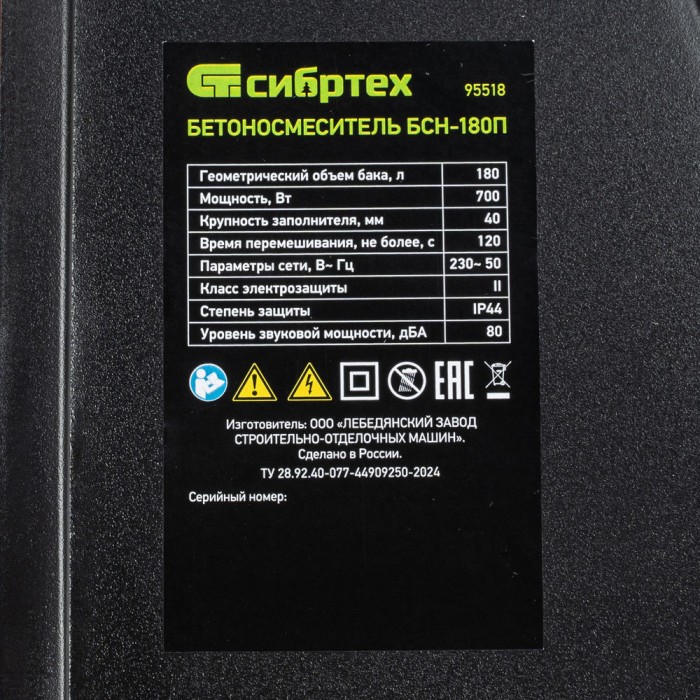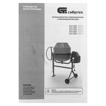 Бетоносмеситель БСН-180П, мощность 700 Вт, полиамидный венец Сибртех (95518)