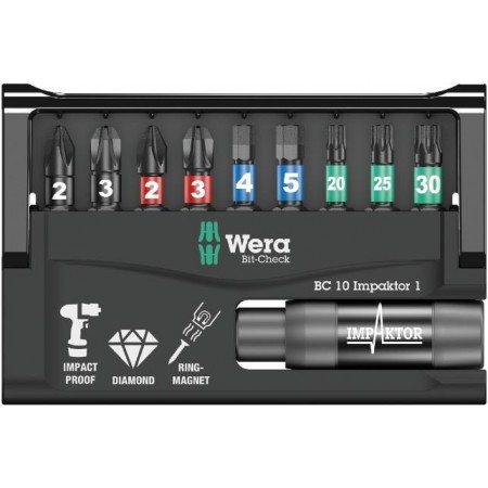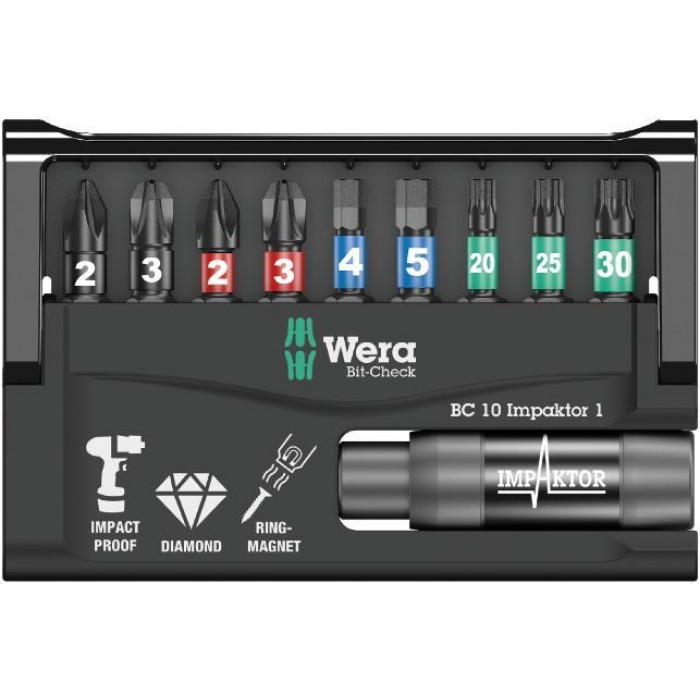 Bit-Check 10 Impaktor 1 набор бит ударных с битодержателем, алмаз, 10 пр., 1/4" C6.3 (WE-057680)