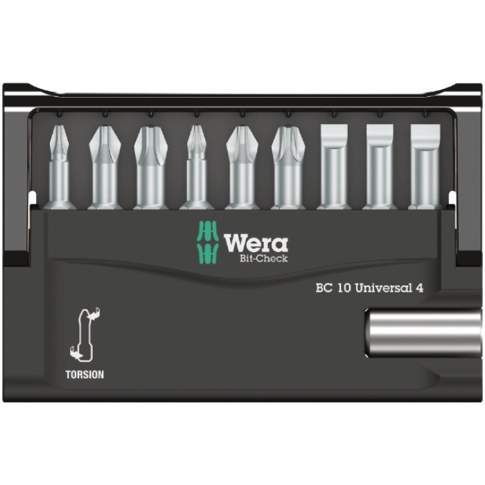 Набор бит торсионных с битодержателем 10 Universal 4, 10 пр., 1/4" C6.3 Bit-Check WE-056159