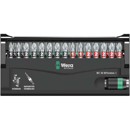 Набор бит торсионных с битодержателем Rapidaptor 30 BiTorsion 1, 30 пр., 1/4" C6.3 Bit-Check WE-057430