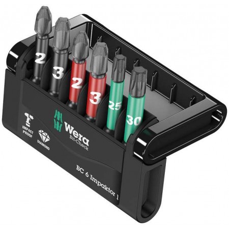 Набор бит ударных 6 Impaktor 1, алмаз, 6 пр., 1/4" E6.3 Bit-Check WE-057695