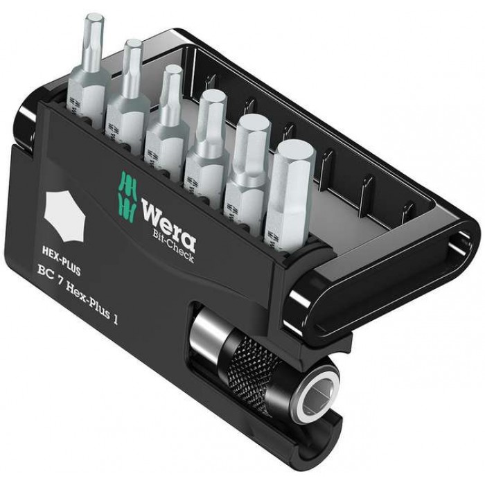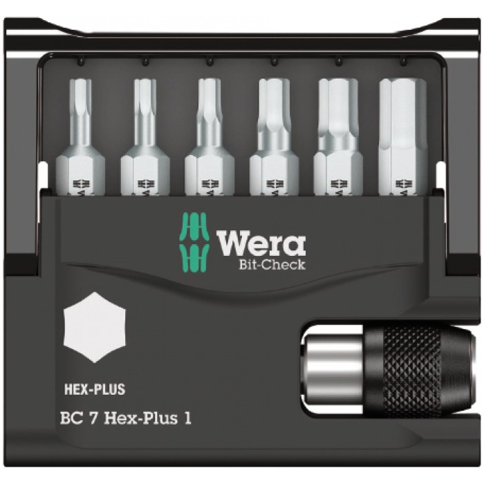 Набор бит с битодержателем 7 Hex-Plus 1, с внешним шестигранником, 7 пр., 1/4" C6.3 Bit-Check WE-056168