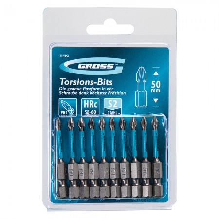 Бита торсионная PH1 x 50 мм, для ударных шуруповертов, 10 шт. Gross (11492)