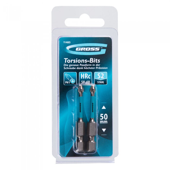 Бита торсионная PH1 x 50 мм, для ударных шуруповертов, 2 шт. Gross (11485)