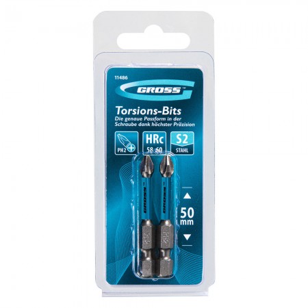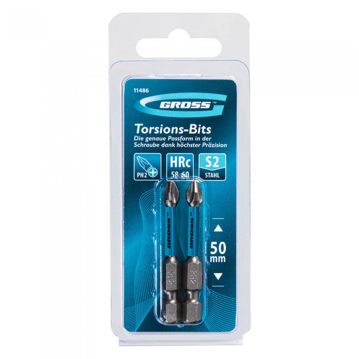 Бита торсионная PH2 x 50 мм, для ударных шуруповертов, 2 шт. Gross (11486)