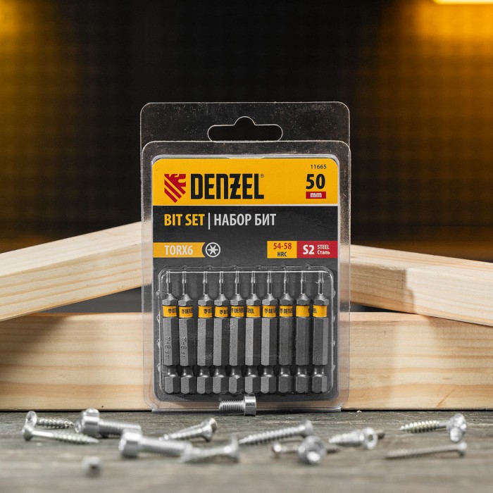 Бита TX 6х50, сталь S2, шестигранный профиль, 10 шт. Е 6,3 Denzel (11665)