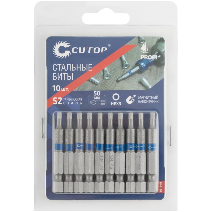 Биты стальные, 10 шт., CUTOP Profi, HEX3, 50 мм (83-648)