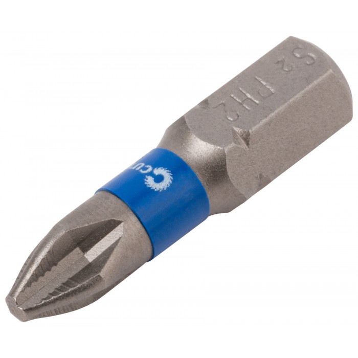 Намагниченный шлиц, антискользящие риски. Высокая точность. Биты изготавливается из тайваньской стали высшего качества марки S2. Знак качества. Ребра биты производятся с помощью холодной штамповки в соответствии с точной спецификацией. Кончик проходит специальный процесс закалки при температурах до 870°C. Результатом является насадка с твердостью 60 HRC для увеличения срока службы. Биты произведены по технологии CUTOP. Ресурс биты от 2000 шт. саморезов (собственные испытания, проведенные на саморезах по дереву 3,5х41). Упаковка: картонный подвес.