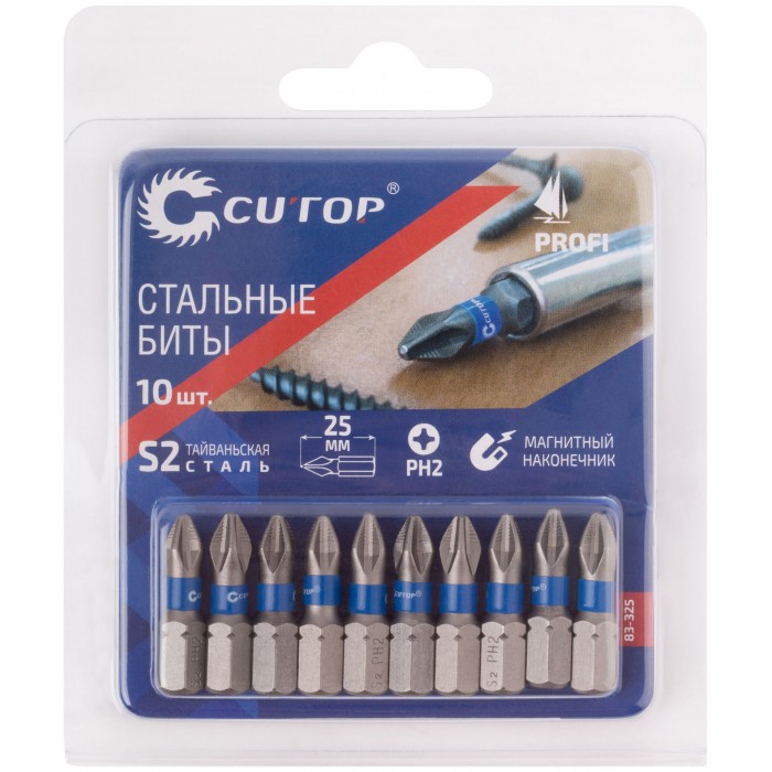 Биты стальные, 10 шт., CUTOP Profi, PH2, 25 мм (83-325)