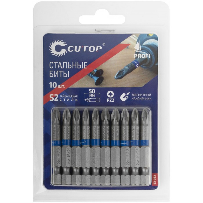 Биты стальные, 10 шт., CUTOP Profi, PZ2, 50 мм (83-333)