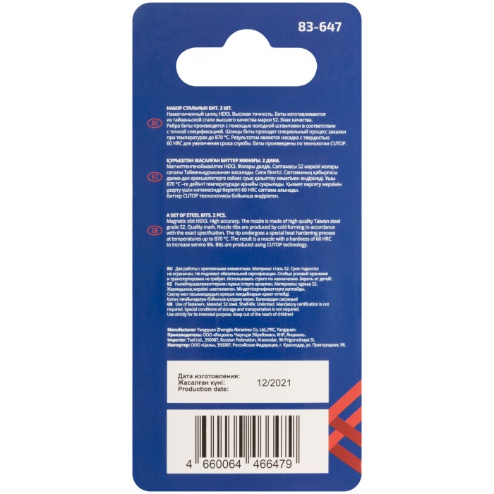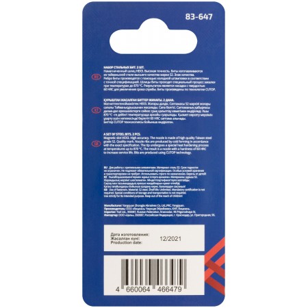 Намагниченный шлиц, антискользящие риски. Высокая точность. Биты изготавливается из тайваньской стали высшего качества марки S2. Знак качества. Ребра биты производятся с помощью холодной штамповки в соответствии с точной спецификацией. Кончик проходит специальный процесс закалки при температурах до 870°C. Результатом является насадка с твердостью 60 HRC для увеличения срока службы. Биты произведены по технологии CUTOP. Ресурс биты от 2000 шт. саморезов (собственные испытания, проведенные на саморезах по дереву 3,5х41). Упаковка: картонный подвес.