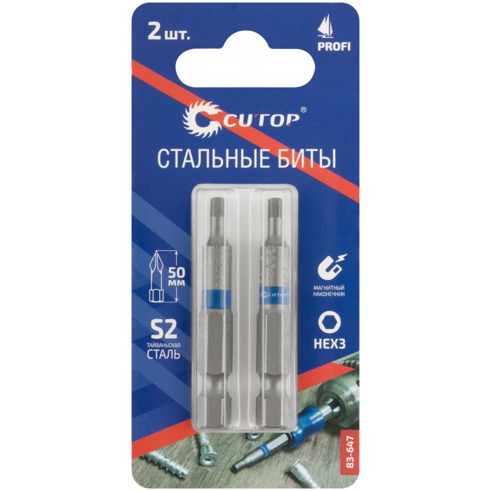 Биты стальные, 2 шт., CUTOP Profi, HEX3, 50 мм (83-647)