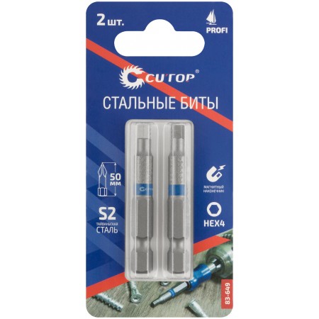 Биты стальные, 2 шт., CUTOP Profi, HEX4, 50 мм (83-649)