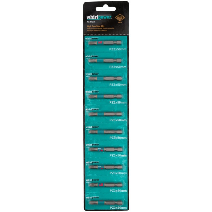 Биты WP, сталь S2, с насечкой, Профи, 50 мм PZ3, 10 шт. (57598)