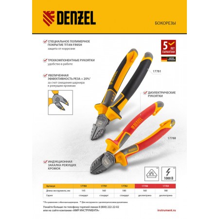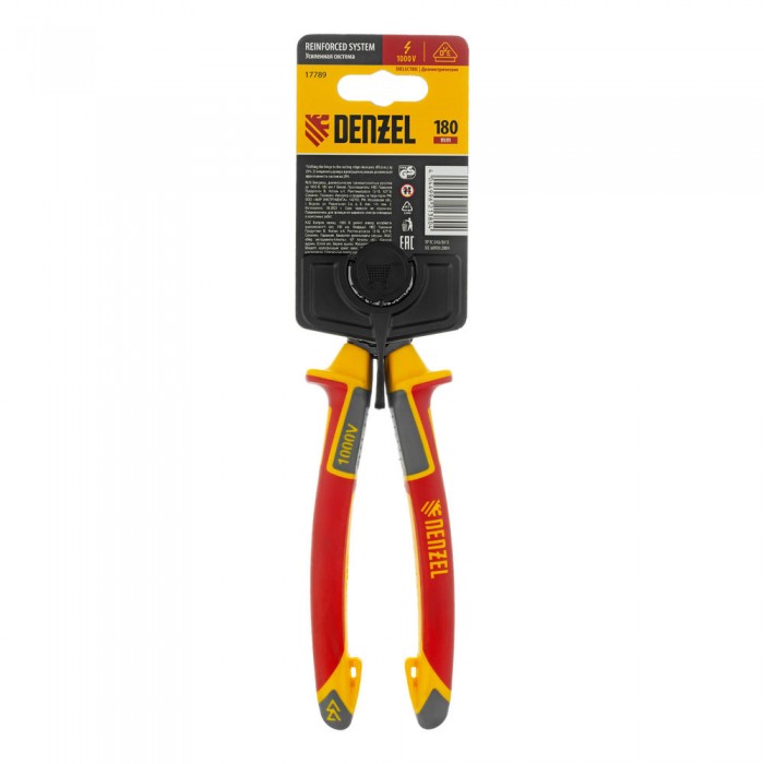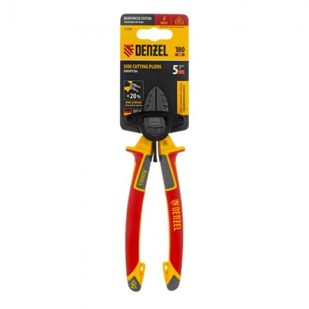 Бокорезы, диэлектрические рукоятки, до 1000 В, трехкомпонентные рукоятки, 180 мм Denzel
