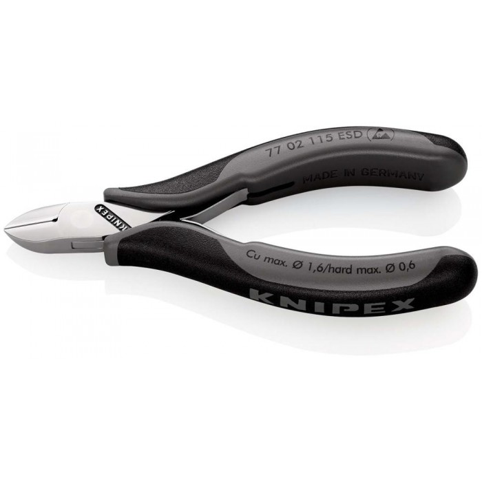 Бокорезы для электроники ESD, округлая головка, 115 мм, 2-комп антистатические ручки (KN-7702115ESD)