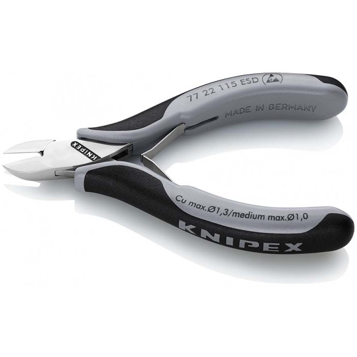 Бокорезы для электроники ESD, округлая головка, 115 мм, 2-комп антистатические ручки (KN-7722115ESD)