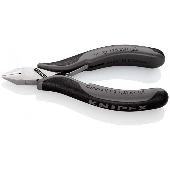 Бокорезы для электроники ESD, острая головка, 115 мм, 2-комп антистатические ручки (KN-7732115ESD)