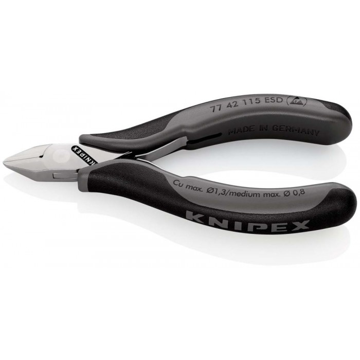 Бокорезы для электроники ESD, острая головка, 115 мм, 2-комп антистатические ручки (KN-7742115ESD)