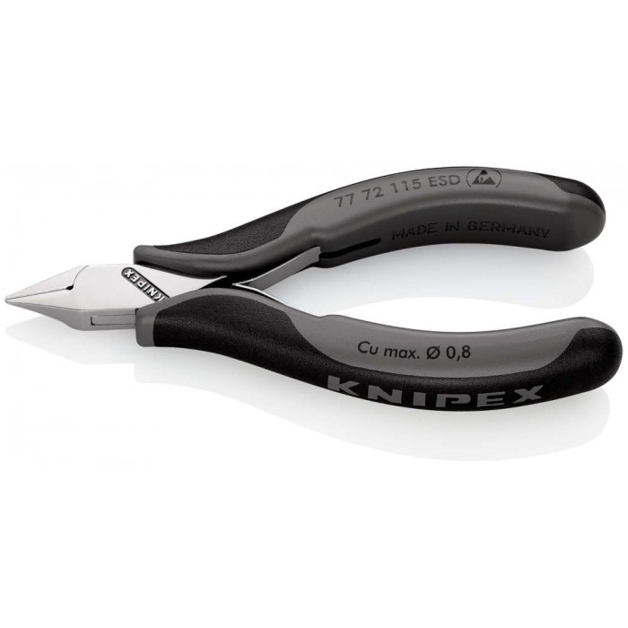 Бокорезы для электроники ESD, острая маленькая головка, 115 мм, 2-комп антистатические ручки (KN-7772115ESD)