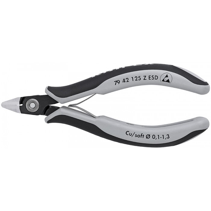 Бокорезы прецизионные ESD, острая головка, для мягких материалов, 125 мм, 2-комп антистатические ручки (KN-7942125ZESD)