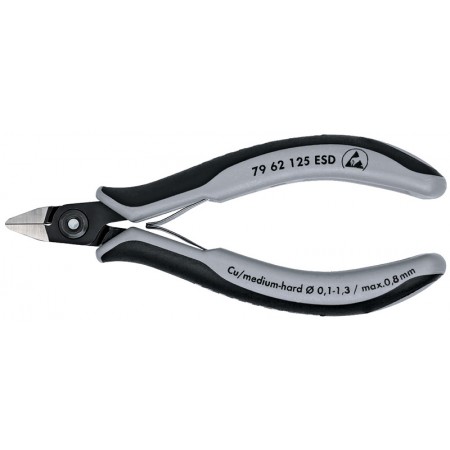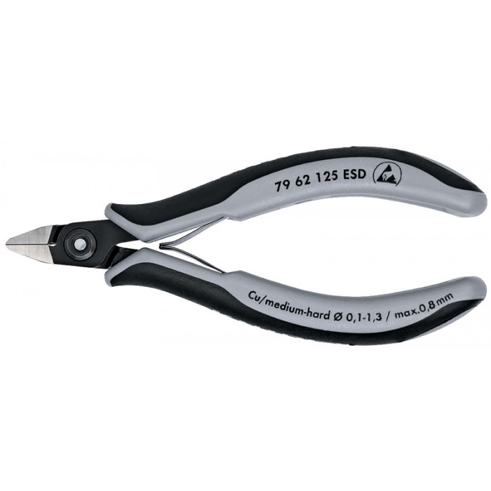 Бокорезы прецизионные ESD, острая головка, зажим для проволоки, 125 мм, 2-комп антистатические ручки (KN-7962125ESD)