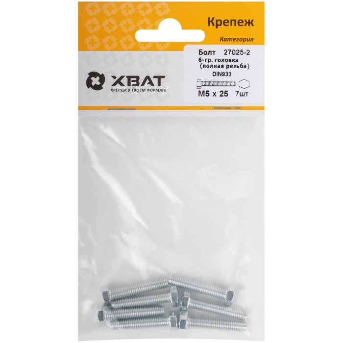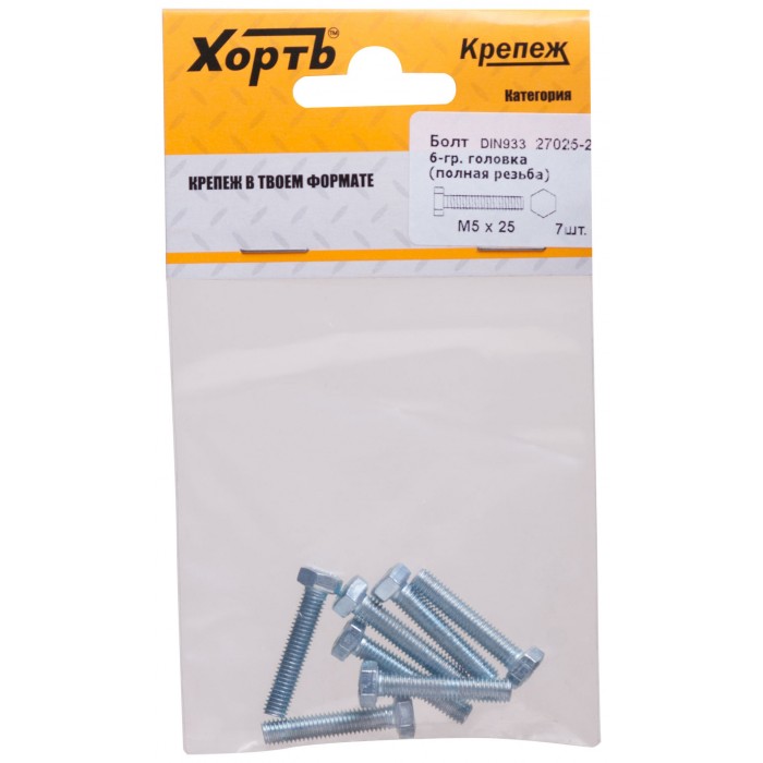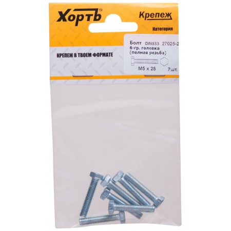 Болт 6-гранная головка (полная резьба) М5 х 25 (фасовка 7 шт) DIN933 (27025-2)