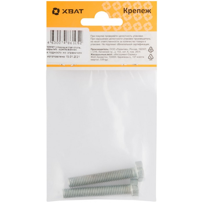 Болт изготовлен из конструкционной оцинкованной стали. Класс прочности 8.8. Рекомендуются для крепления и соединения узлов и деталей в машиностроении, строительстве. Позволяет быстро и качественно произвести монтаж.