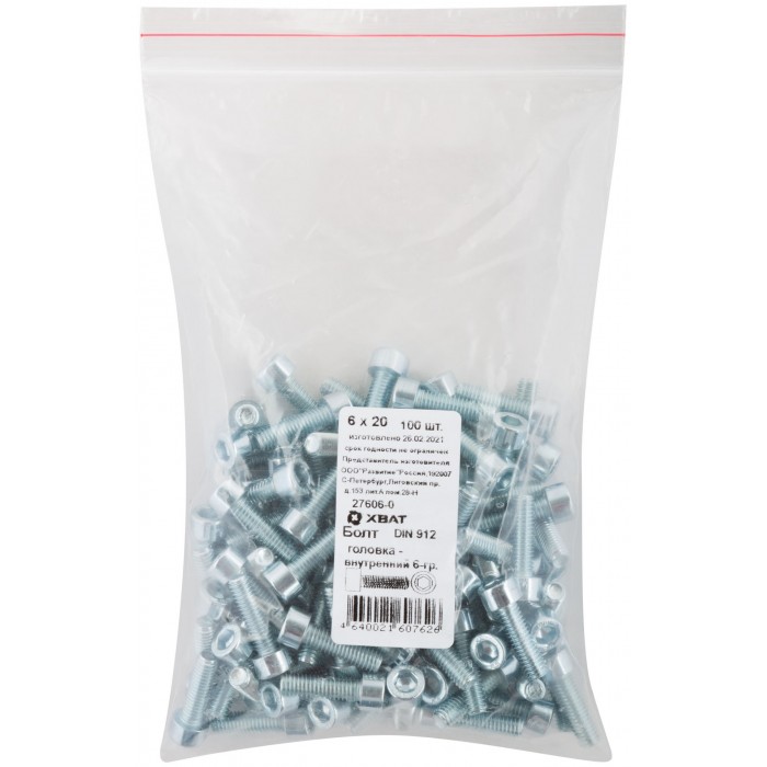 Болт головка - внутренний 6-гранник 6х16 мм DIN 912 100 шт 27605-0