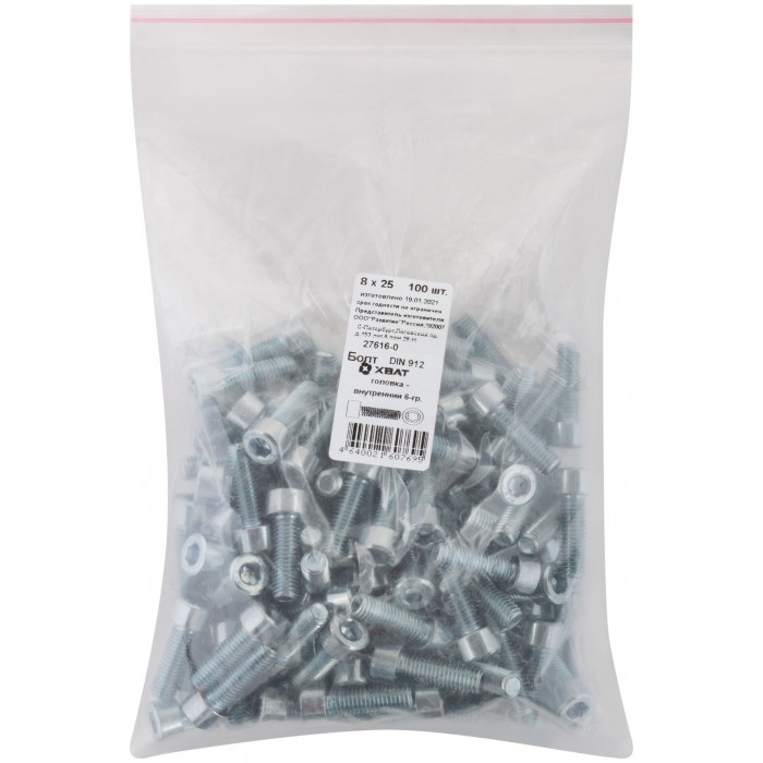 Болт головка - внутренний 6-гранник 8х20 мм DIN 912 100 шт 27615-0