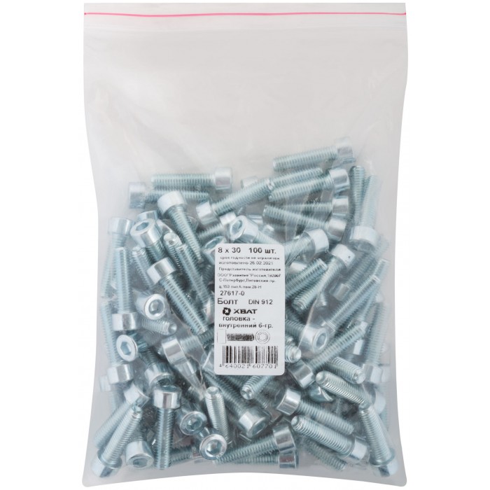 Болт головка - внутренний 6-гранник 8х25 мм DIN 912 100 шт 27616-0