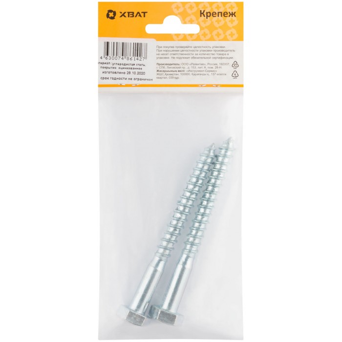 Шестигранная головка D=10/12/14/19. Редкий шаг резьбы под углом 600, острый наконечник, изготовлен из стали. Оцинкованный. Применяется для крепления лаг, реек, сборки деревянных конструкций, сантехнических креплений и других целей, когда требуется мощное закрепление. Используется также совместно с пластмассовыми и металлическими универсальными дюбелями.