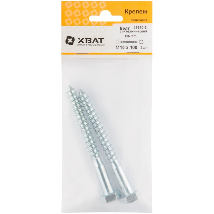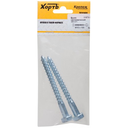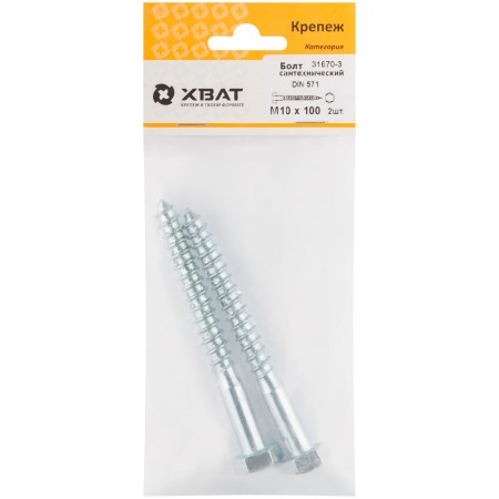 Болт сантехнический 10х100 мм DIN 571, 2 шт 31670-3