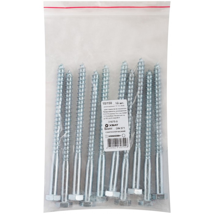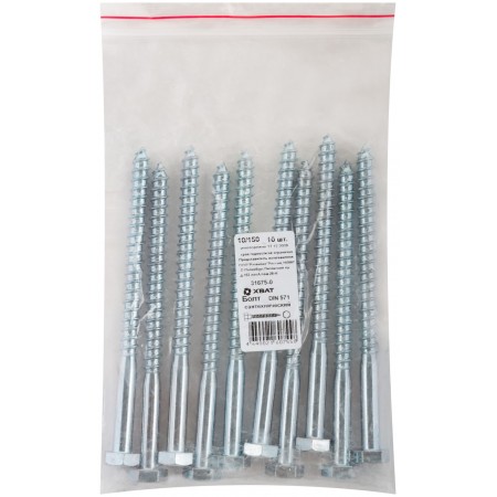Болт сантехнический 10х150 мм DIN 571, 10 шт 31675-0