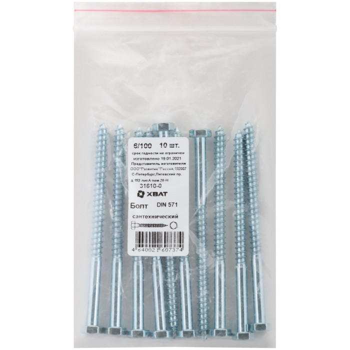 Болт сантехнический 6х100 мм DIN 571, 10 шт 31610-0