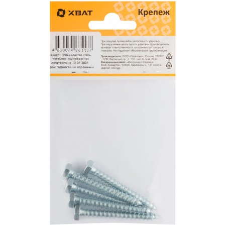 Шестигранная головка D=10/12/14/19. Редкий шаг резьбы под углом 600, острый наконечник, изготовлен из стали. Оцинкованный. Применяется для крепления лаг, реек, сборки деревянных конструкций, сантехнических креплений и других целей, когда требуется мощное закрепление. Используется также совместно с пластмассовыми и металлическими универсальными дюбелями.