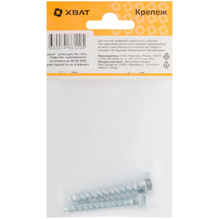 Шестигранная головка D=10/12/14/19. Редкий шаг резьбы под углом 600, острый наконечник, изготовлен из стали. Оцинкованный. Применяется для крепления лаг, реек, сборки деревянных конструкций, сантехнических креплений и других целей, когда требуется мощное закрепление. Используется также совместно с пластмассовыми и металлическими универсальными дюбелями.
