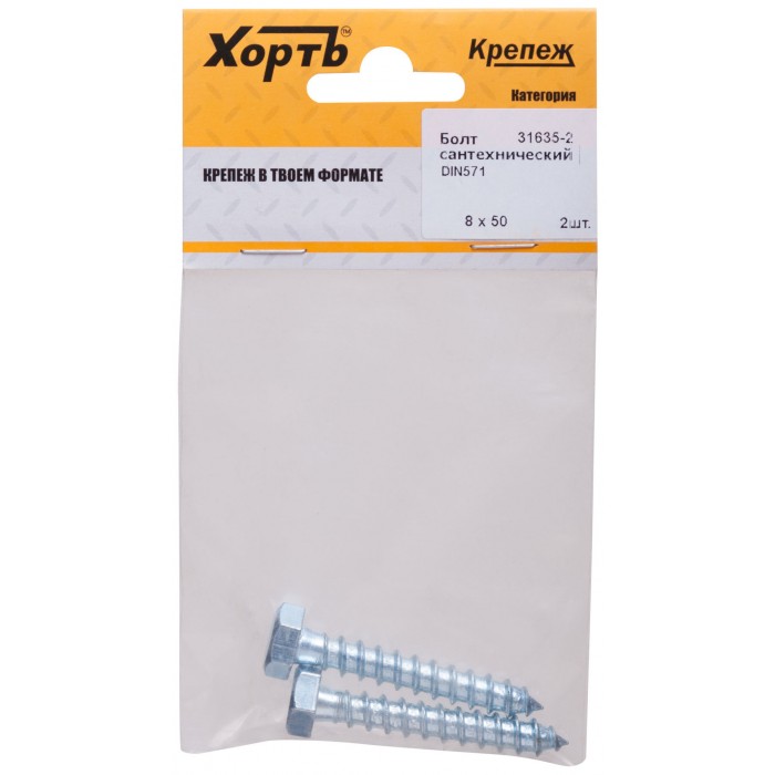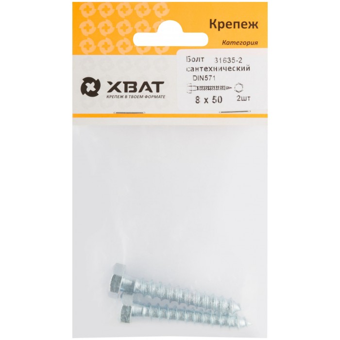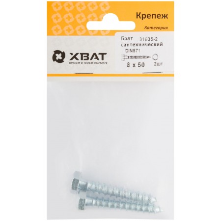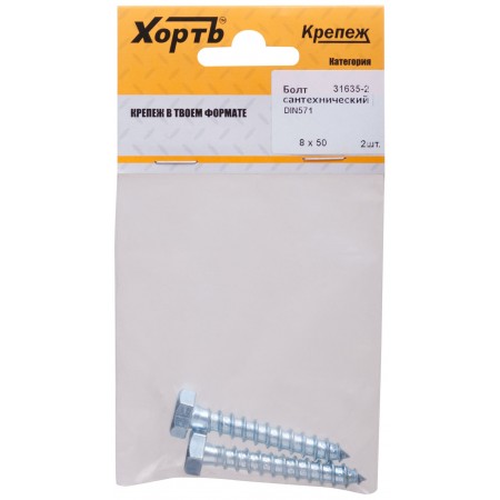 Болт сантехнический 8х50 мм DIN 571, 2 шт 31635-2